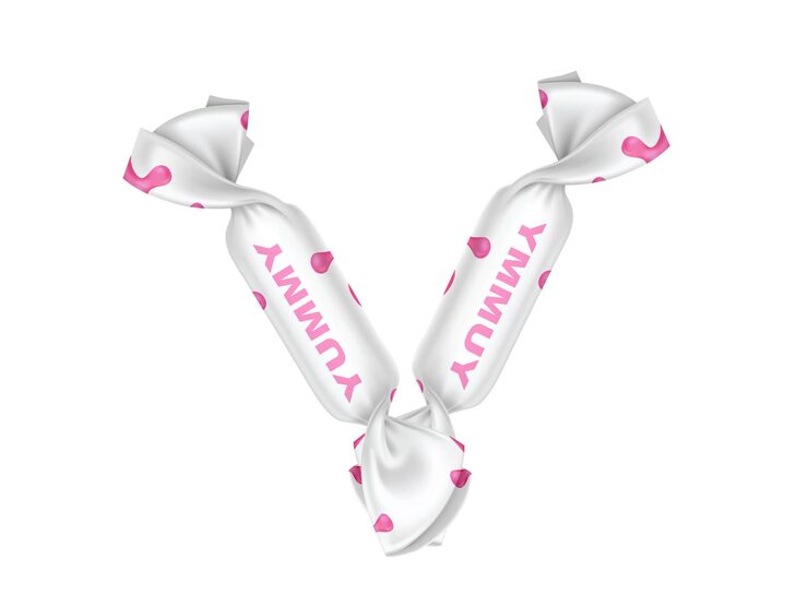 Balas personalizadas para todos os setores (exceto campanhas políticas). Produzidas com açúcar, glucose, aromatizantes, acidulante cítrico e corantes. Validade de 2 anos. Embalagens BOPP, laminadas, metalizadas ou ecológicas, com impressão colorida ou P&B em alta qualidade, tinta atóxica. Medida: 5 × 3,5 cm. Sabores variados (frutas, café, menta etc.) e diferentes tipos (balas, gomas, chicletes, recheadas e pastilhas). Produto sem glúten.
